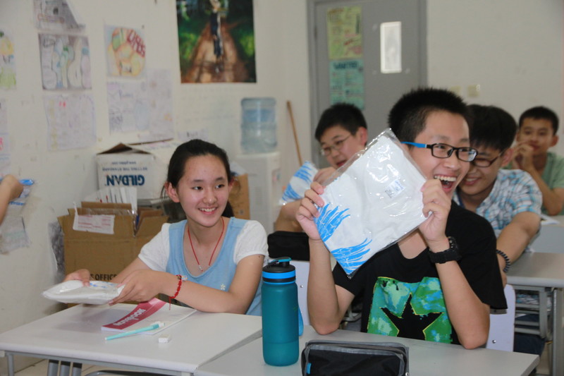 分发天才外交官夏令营营服和徽章,孩子们特别喜欢.