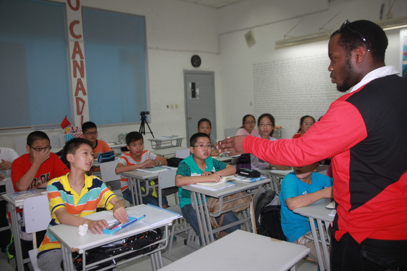 同学们按照英语水平高低,由两个老师教两个班。两个班教课的内容是一样的,只不过用的语言难度有所不同。