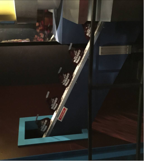 琳琅满目的商品摆满了货架,然而现在不是购物时间,我们将进入去参观巧克力的制作过程