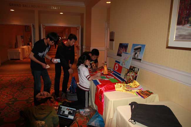 每个国家都会拥有一块自己的展示区,用来展示代表国的民俗、风情、文化、地标等,以使世界各地的朋友更好的了解你的代表国。展板尺寸没有硬性规定,可大可小。展区的内容可以有图片、绘画、文字介绍、手工艺品、模型,你可以调动所有的聪明才智,不仅仅局性于看的东西,甚至可以播放声音或视频。布置好后,和你的辛勤劳动成果合个影吧,是不是特别有成就感?